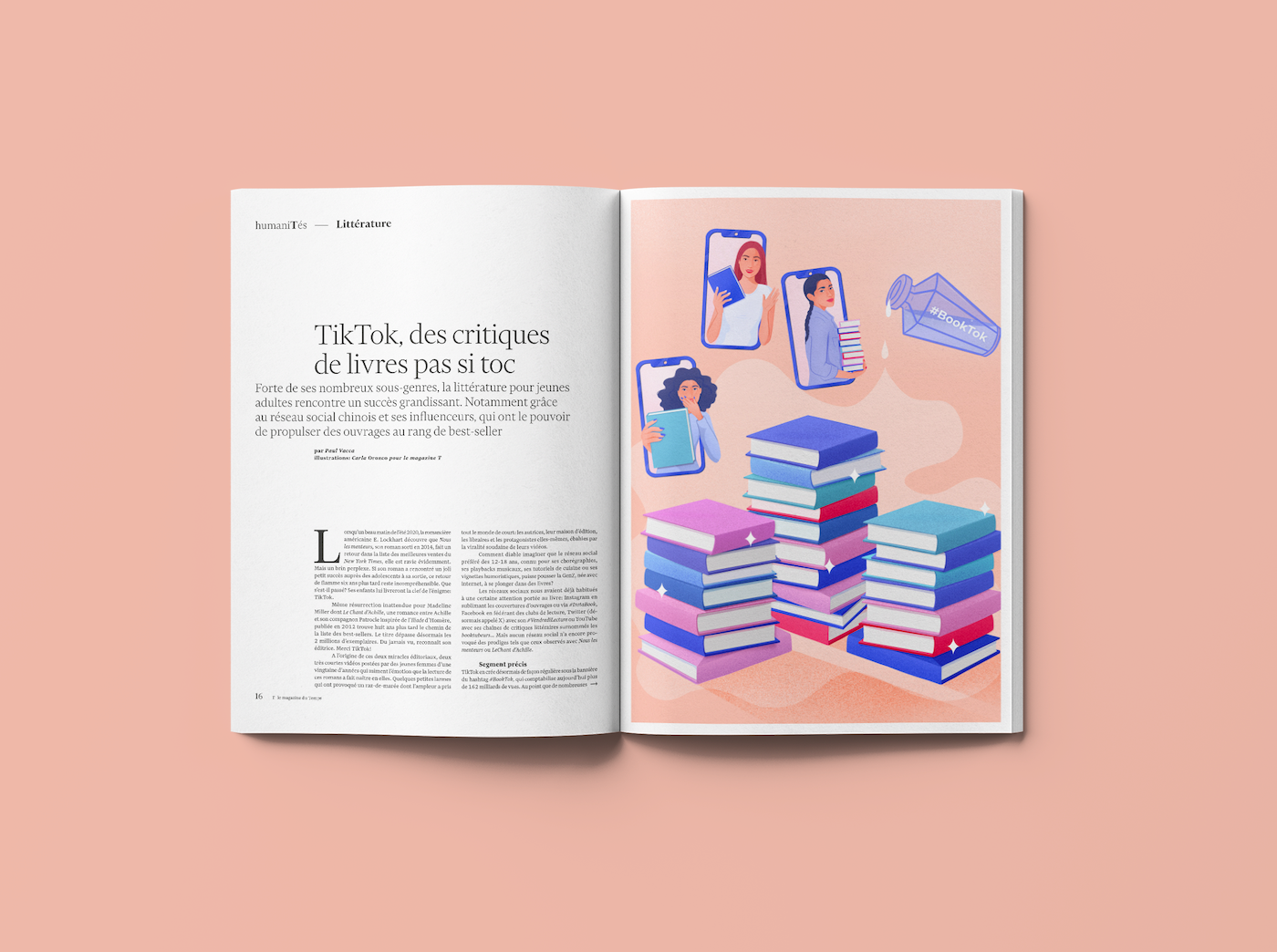 Illustrations for an article on the power of TikTok to revitalize popular books, published in T Magazine. Written by Paul Vacca and illustrated by myself.