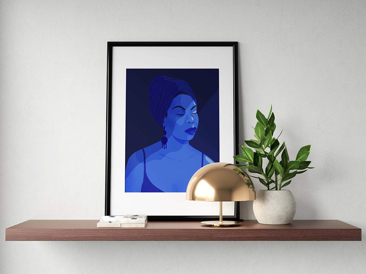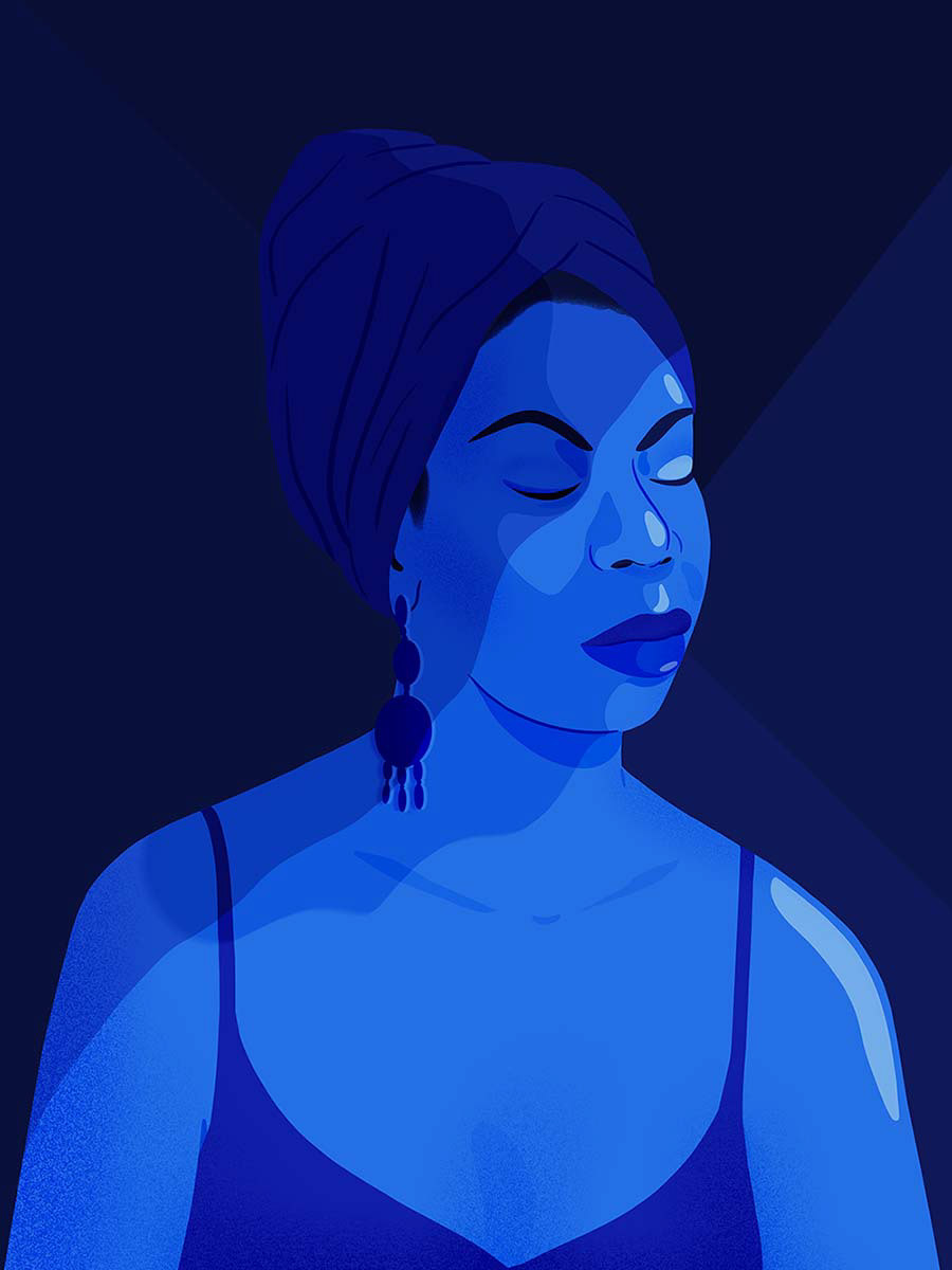 Personal project : The singer and activist Nina Simone played a crucial role in the political and musical outcome of the Civil Rights Movement in the 1960’s. That blue color symbolizes loyalty, intelligence, truth, knowledge, power and integrity.